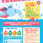 2025年11月4日 / 最終更新日 : 2025年11月4日 徳野真見 水道凍結事故にご注意! こんな時は特に注意! ・外気温がマイナス4℃以下になるとき ・一日中氷点下の真冬日が続いたとき ・就寝前や、旅行・帰省などで家を留守にするなど、長時間水道を使用しないとき 水道凍結事故防止に有効な「水抜き」 […]